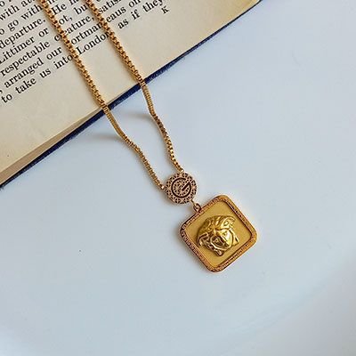 طول گردنبند با 5 سانتی متر زنجیر تنظیم مجموعا 48 سانتی متر میباشد. اندازه پلاک طرح ورساچه نیز 2*2 است.