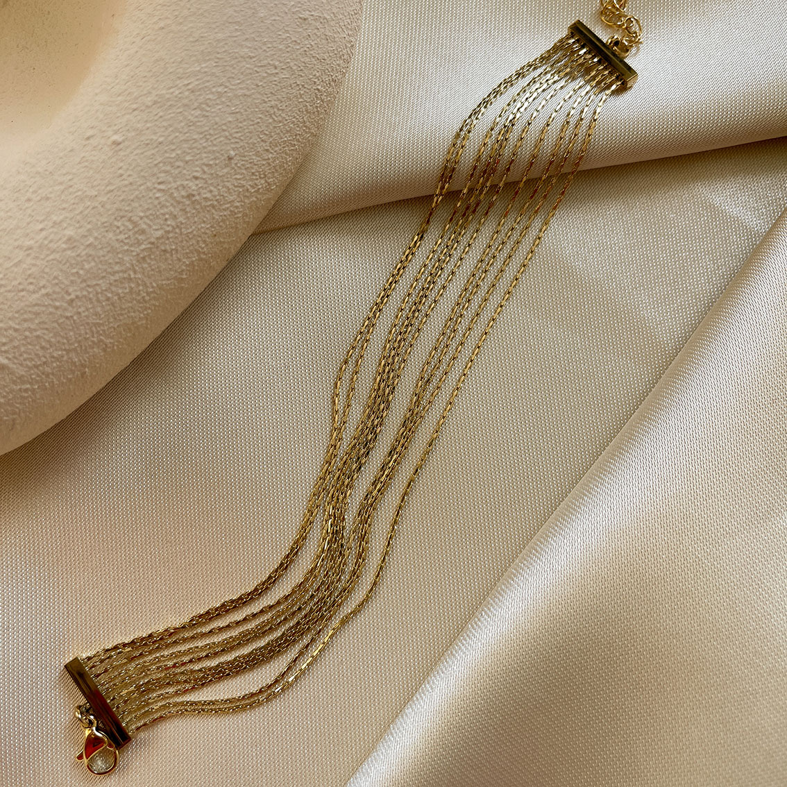دستبند ده رج استیل طلایی